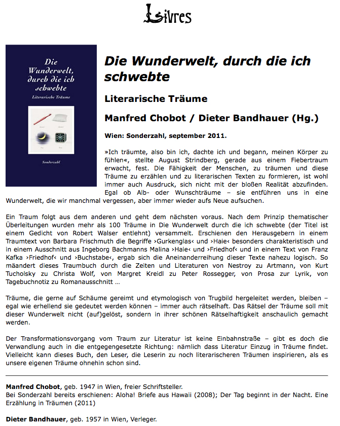 Die Wunderwelt, durch die ich schwebte – Literarische Träume